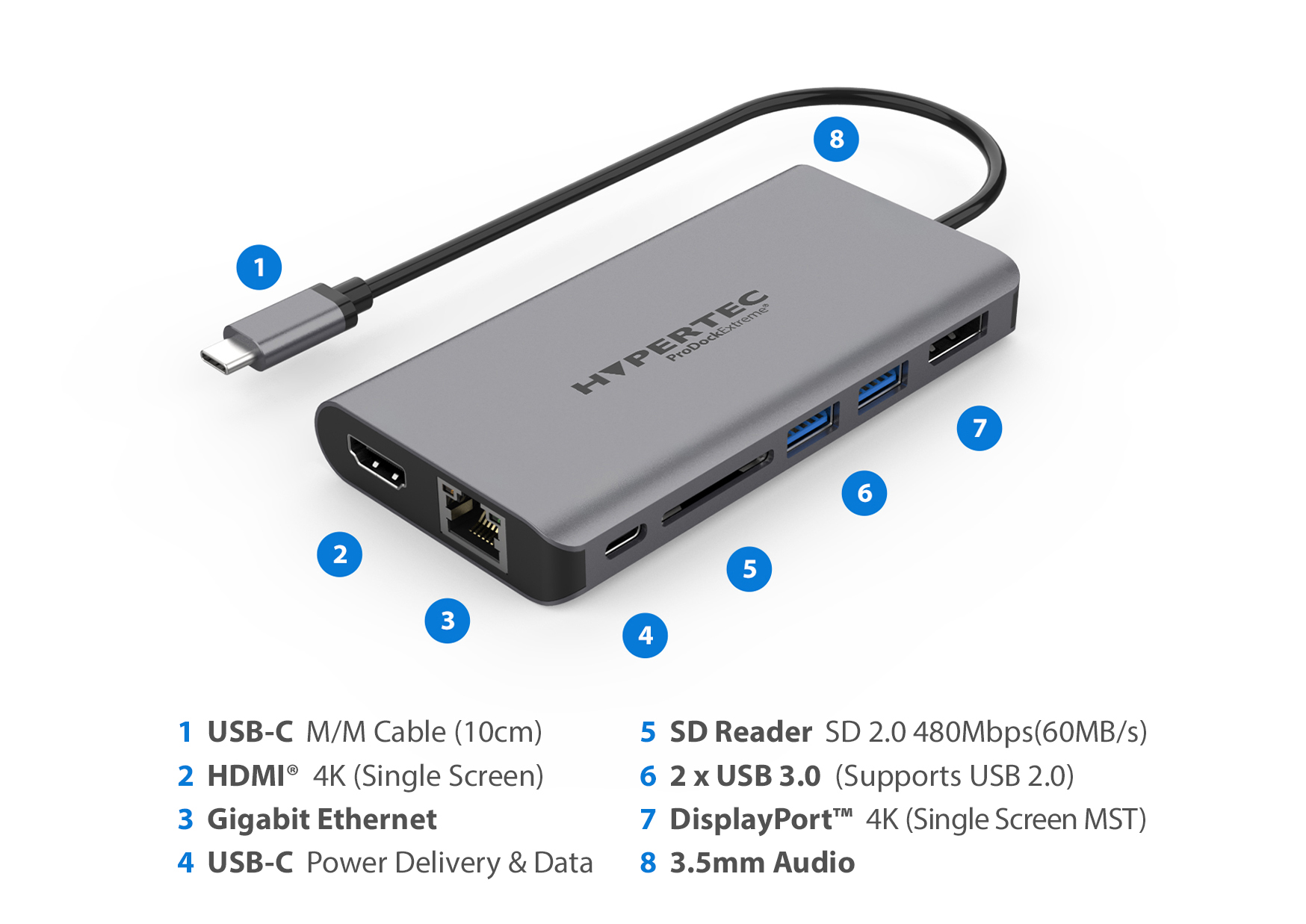 Hypertec ProDockExtreme Gen2 - Universal USB-C Dock with HDMI DisplayPort Dual Screen USB 3.0 Gigabit Ethernet SD Reader 3.5mm Audio & 100W Power Delivery