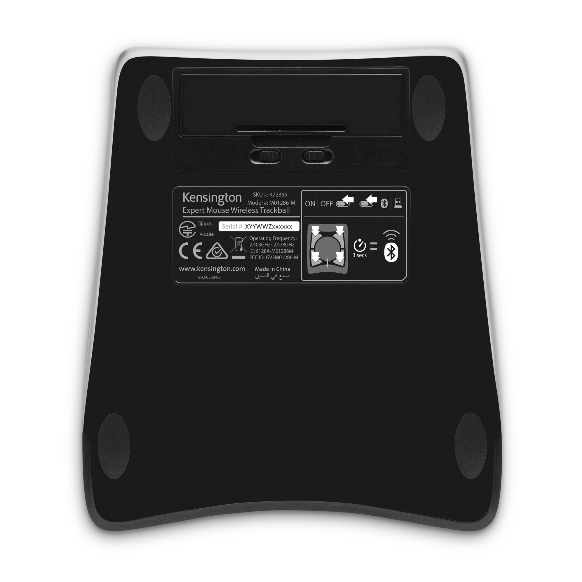 Kensington Expert Mouse Wireless Trackball. Form factor: Ambidextrous. Movement detection technology: Trackball, Device interface: RF Wireless + Bluetooth, Movement resolution: 400 DPI, Buttons type: Pressed buttons, Buttons quantity: 4, Scroll type: Ring. Power source: Batteries. Product colour: Black